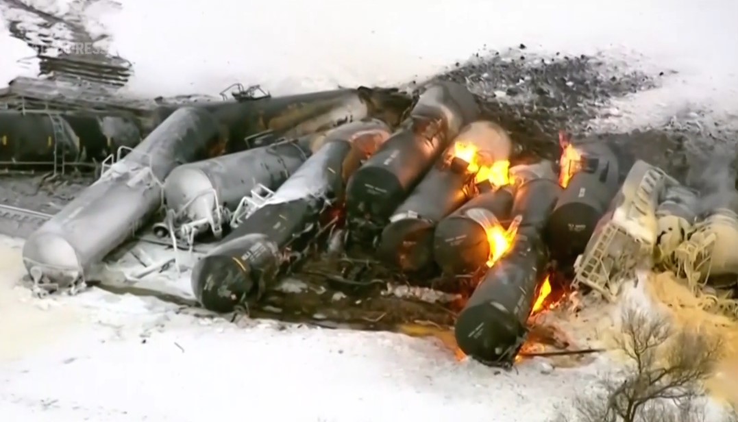 Five days after a train carrying vinyl chloride derailed and exploded near the Ohio-Pennsylvania border, crews ignited a controlled burn of toxic chemicals to prevent a much more dangerous explosion. Thousands in East Palestine, a town of about 5,000 people, evacuated, and officials warned the controlled burn would create a phosgene and hydrogen chloride plume across the region. Phosgene is a highly toxic gas that can cause vomiting and breathing trouble, and was used as a weapon in the first world war. Click here for the full article       |