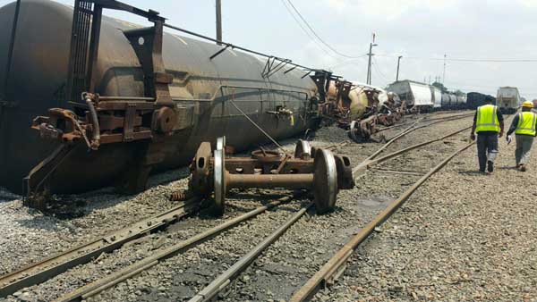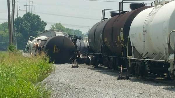 |      Courtesy: Addis Police Department ADDIS, LA – On May 19, 2015, Officials with West Baton Rouge Parish reported a mandatory evacuation and shelter in place issued as a precaution after a train derailment in Addis has been lifted. The order was lifted around 1:15 a.m. All residents were allowed to return to their homes. Originally, the evacuation order went into effect at 7 p.m. Four chemical tankers derailed in Addis around 1:30 p.m. Tuesday. Officials ordered the evacuation of Acadian Crossing and Sunset neighborhoods, as well as areas within 1,000 feet from the derailment site. Officials said the four Union Pacific cars were en route to Livonia. The train was moving slowly at the time of the derailment. Union Pacific officials won't know the cause of the derailment until they move the tankers and inspect the tracks. Louisiana State Police, Department of Environmental Quality and Union Pacific all responded to the scene to inspect the tankers. The chemicals on the train are sodium hydroxide, propylene oxide, propylene dichloride and nitrogen blanket purge. Sodium hydroxide, also known as lye and caustic soda, is an inorganic compound. Propylene oxide is an organic compound used for the production polyurethane plastics. Propylene dichloride is an organic compound classified as a chlorocarbon. It is a colorless, flammable liquid with a sweet garlic odor. It is obtained as a byproduct of the production of epichlorohydrin, which is produced on a large scale. In contact with water, epichlorohydrin hydrolyzes to 3-MCPD, a carcinogen found in food. It is also used as a solvent for resins, and paints, and it has found use as an insect fumigant. The Addis Police Department is investigating the derailment, along with the assistance of the West Baton Rouge Parish Sheriff's Office. Officials said the evacuation was a precaution, in the event something would happen when crews turned the train cars back upright. Officers with the Addis Police Department went door-to-door to inform residents of the evacuation and to assist.  |